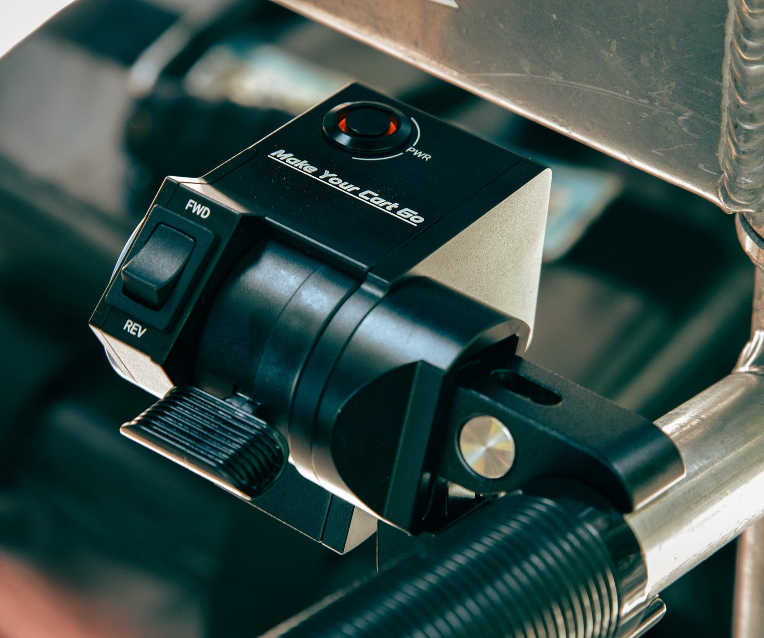 You can motorize your cart in just minutes with our slip-in or bolt-on wheel design, full adjustable throttle clamps, and simple connections.