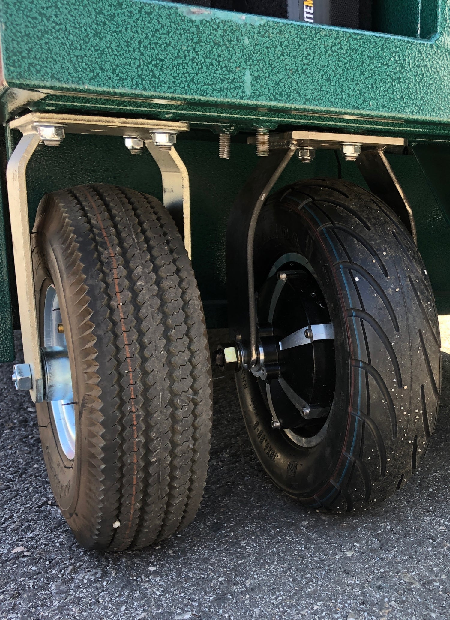 Any cart with 10” wheels can be motorized in a matter of minutes, with cable options to fit kit components anywhere.