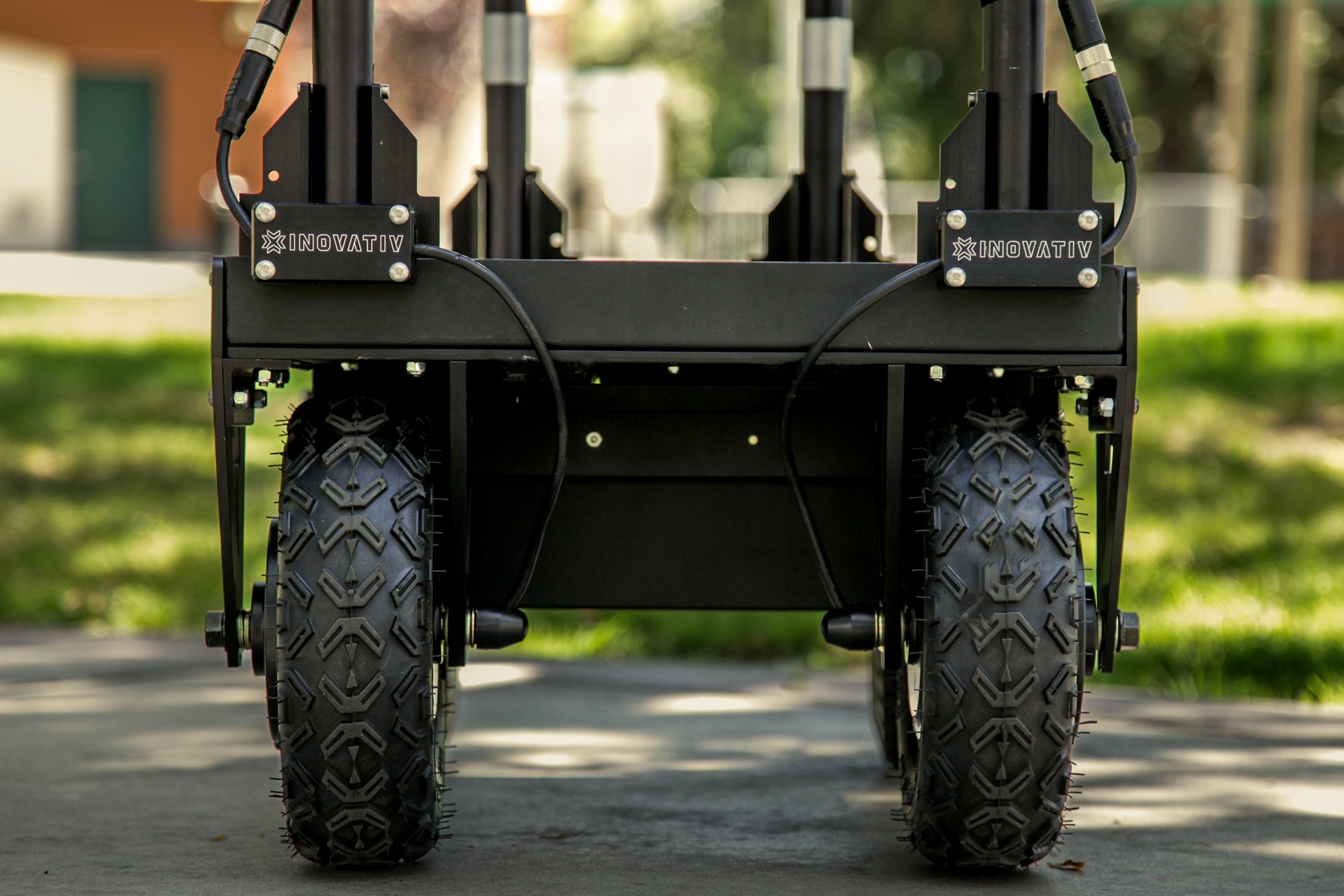 With a dedicated 52V battery and two powerful hub motor wheels, this Location Dual kit turns your Inovativ Echo cart into a go-anywhere machine. Revolutionize your gear transport with a powerful blend of performance and maneuverability.