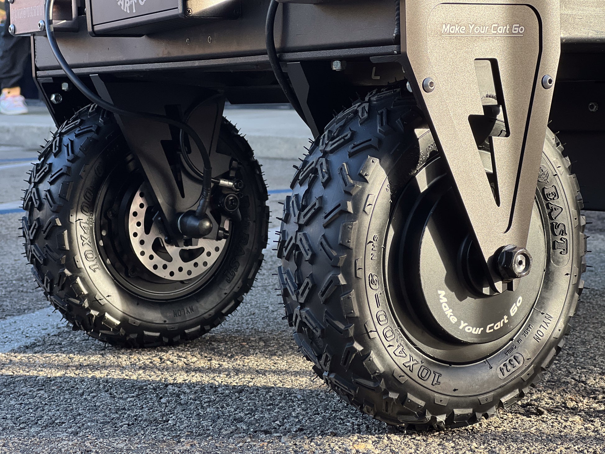 With a dedicated 52V battery and two powerful hub motor wheels, this Location Dual kit turns your Inovativ Echo cart into a go-anywhere machine. Revolutionize your gear transport with a powerful blend of performance and maneuverability.