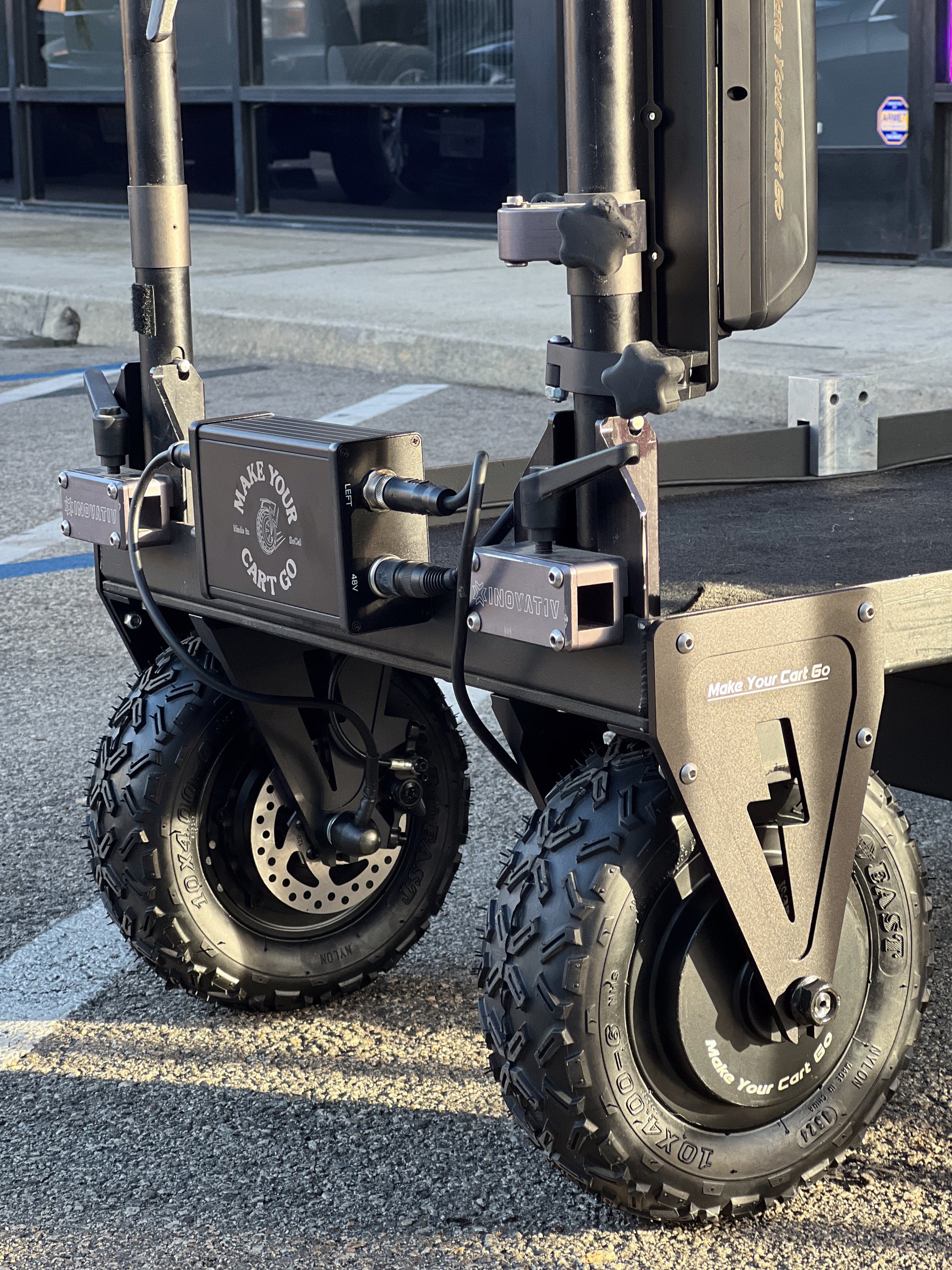 Our Flagship Location Dual kit designed for the Inovativ Echo cart. This kit comes with 2 custom made Echo style fork arms that match the stock legs but fit our V2 wheels.