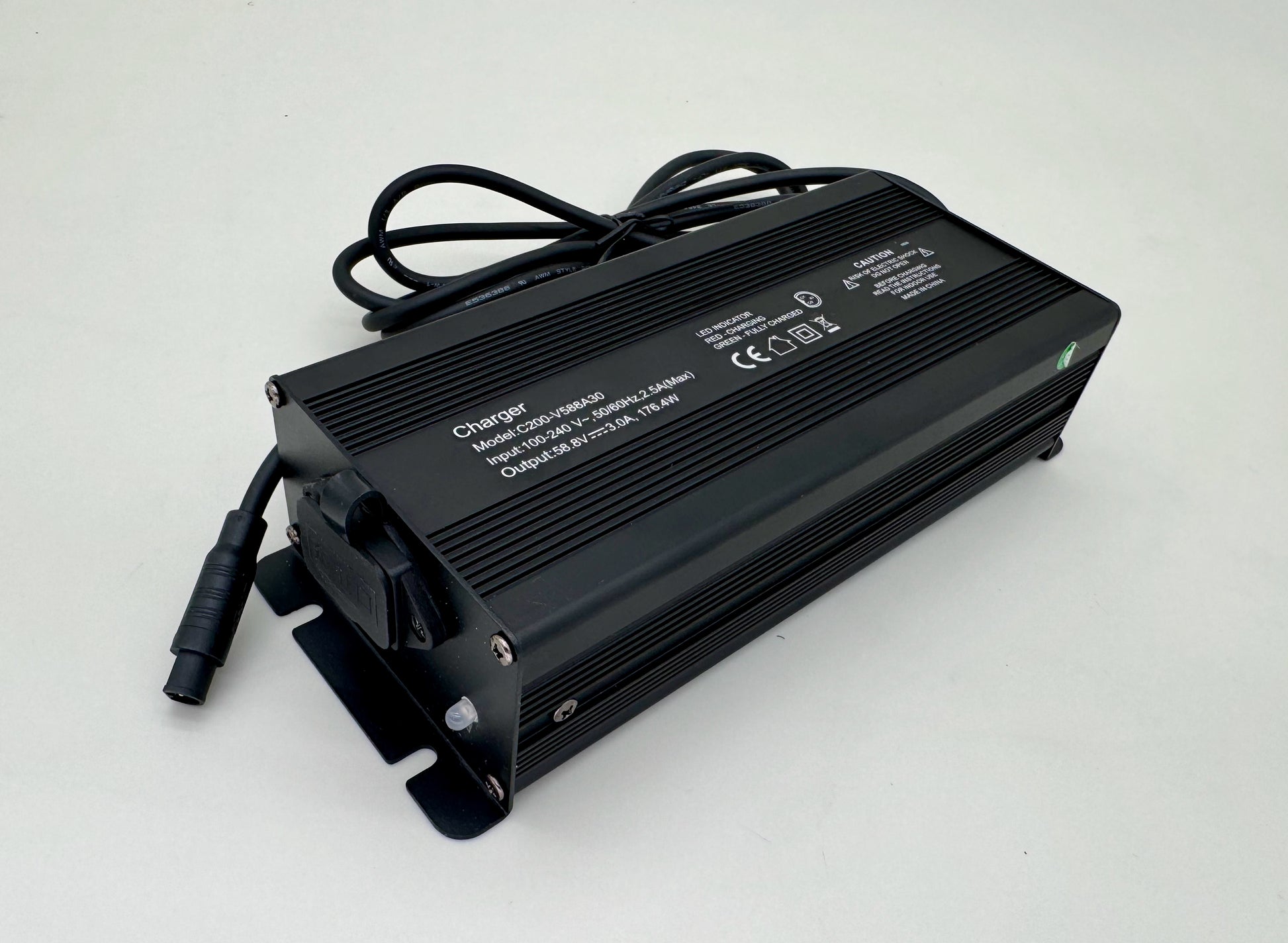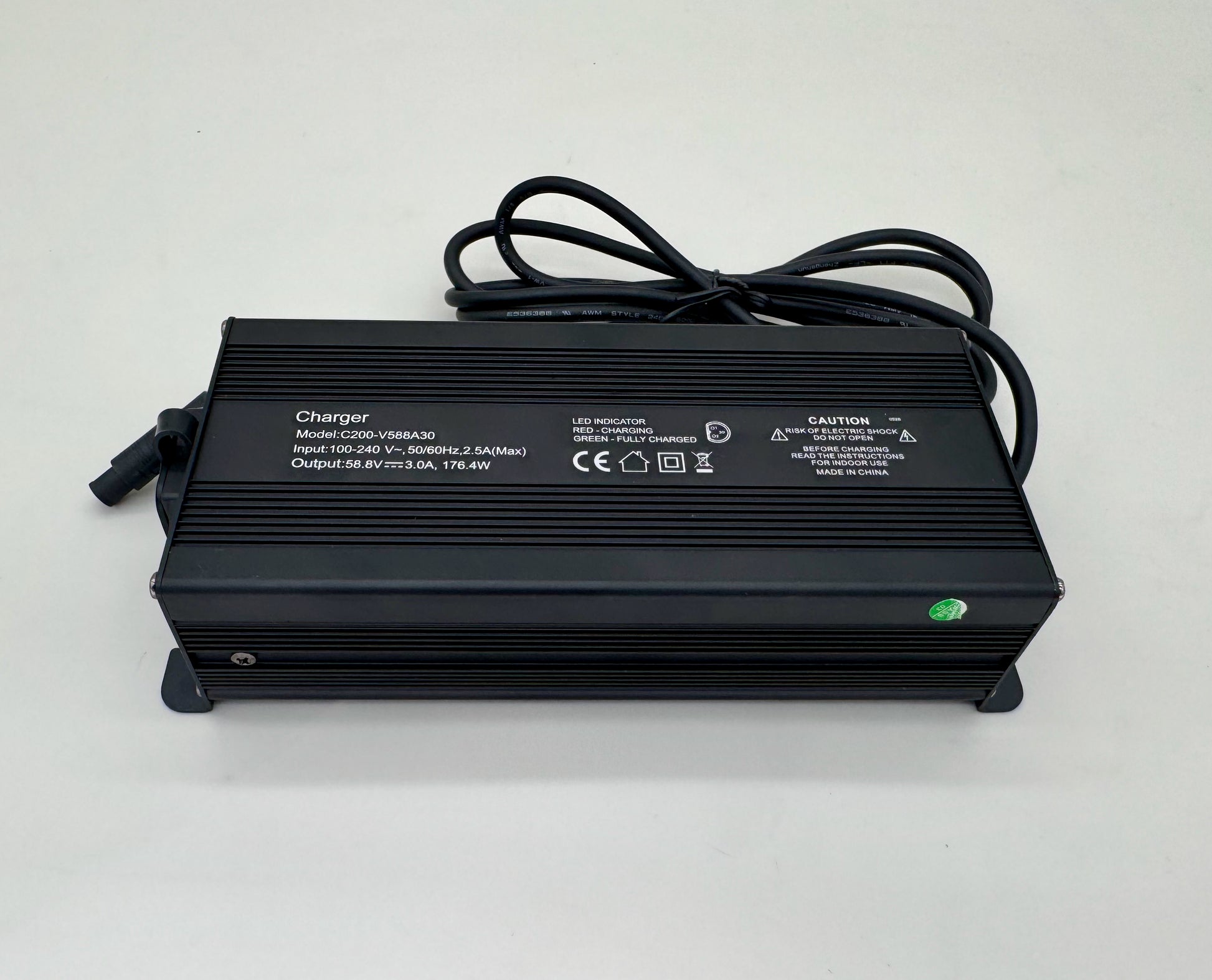 Replacement Battery Charger for V2 kits. This charger only works with the V2 kits that have the small 3 prong charging cable. This charger is waterproof and has tabs for mounting under your cart near your battery.